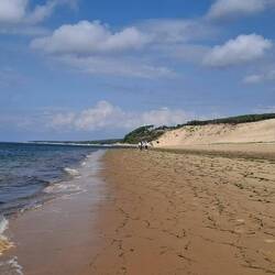 Auf dem Rückweg ist Badestunde mit viel Wasser, Sand und Dünen, dafür mit kaum Menschen. Derart breite Strände erlebe ich zum ersten Mal.