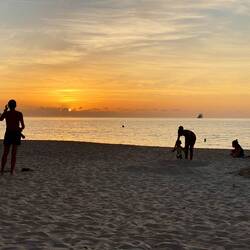 Heute um 05.45 zum Sonnenaufgang mal über die Straße an den Strand … Temperatur ist im Schatten 🥵
