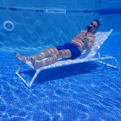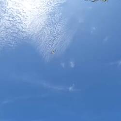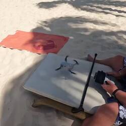 Heute war es fast windstill, genau richtig, um den ersten Auslandsflug zu machen ... Startfreigabe von DJI-Fly ... los gehts ... einfacher als gedacht, Start und Landung auf der Sonnenliege ...