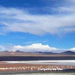 Après nous avoir annoncé qu'on avait pas d'hébergement pour le soir (la tuile), Yves nous depose près du venteux et sublime laguna Colorado (le rouge). On s'amuse après à identifier les 3 espèces de flamants roses qu'on nous a montré avant de rentrer dans le 4x4 pour entamer la recherche d'une auberge pour le soir.