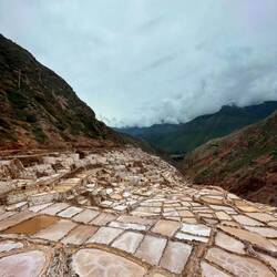 Ce sont des bassins peu profond en terasse eux aussi (oui je vous avez dit qu'ils adoraient les terasses) installés la ou coule naturellement une rivière salée : les gens qui y travaillent (encore aujourd'hui) alimentent les bassins, attendent qu'ils sechent et recoltent le sel pour le vendre