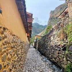Deux autres bus plus tard, nous voila arrivées la ou on dort : la dame nous conseille de monter sur une montagne et on passe dans le village qui a gardé son plan inca : les ruelles sont etroites et c'est tres mignon