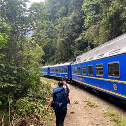 vient ensuite le moment de repartir, les adieux sont tristes mais on reprends les 2900 marches pour descendre, une fois en bas on mange un bout on récupère nos sacs et c’est partie pour 8km le long des rails, qu’on fera d’une traite c’est plus facile qu’hier