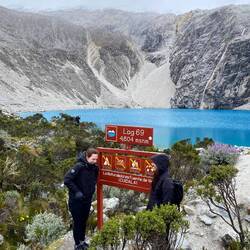 Au bout d’un moment on perd vraiment Flavie puis on entame la grosse montée avant d’être a la laguna, la Nina m’abandonne puisque je fais 15 pauses dans lesquelles je failli vomir à chaque fois. J’arrive finalement en haut ( 4600m quand même) et notre petit groupe est sain et sauf et on est trop contentes d’être la. On se fait des petits sandwichs et on redescend. La descente est super on papote bien et en arrivant en bas on attend le bus pour nous emmener au début du trek de Santa Cruz ou on dort ce soir.