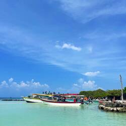 ce matin réveil 8h, banane et Oreo pour prendre des forces et on embarque à bord de notre bateau pour la journée direction les petites îles en face de rincon