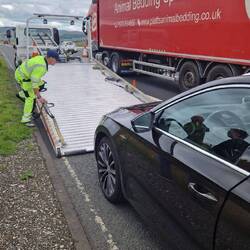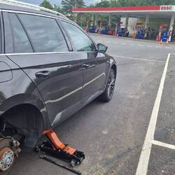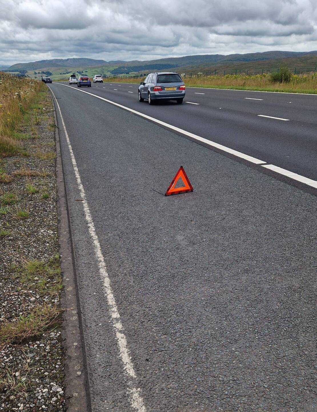 Mitten auf der Autobahn hinter der Schottisch-Englischen Grenze eine Reifenpanne. Zum Glück konnten wir nach knapp 4 Stunden weiterfahren.