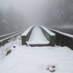 Concrete snakes writhe down the steep mountainside, dropping away, extreme, into the mystery of heavy cloud, emerging again when it clears. We move slow, slower than the design encouraged, so much slower than the bullet vessels that raced to the bottom. It's slow enough to see the pine trees we pass. The branches steam and fizz with rising vapour, yesterday's snow heading back to the sky, like the aroma of a cup of coffee, floating up.