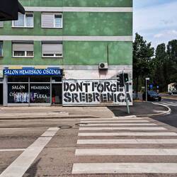 There's no mistaking where you've arrived at. A flag flutters, a blue and a yellow field cut diagonally across, a parade of white stars on the blue following the incline. The Bosnian border guards get a juice.