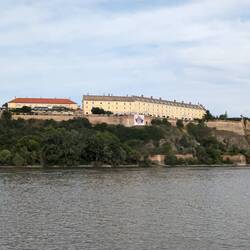 Later, you eat ice cream and drink Coca Cola across the river from the Novi Sad fortress, under a waxing moon. The fort is imposing, yet languid, next to the river; a gliding Danube cruise ship sweeps into town, clipping along in the night breeze and swinging into port beyond the tall bridge.