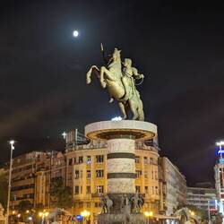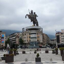 Alexander the Gr- I mean, 'warrior on horse', towers over the centre of town on his epic plinth. He can't even bear his real title, titanic as it is, and the puzzle of his alias is reflected by every surface you can see, a strange hall of mirrors, a distortion of a city. Nothing is quite what it seems, or is labelled as.