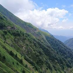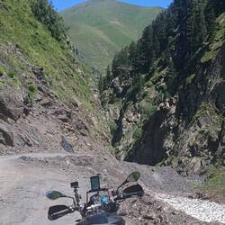 Paluu takaisin Omalosta Kvemo Alvaniin. Paluu matkan ajelin samaa matkaa Italialaisen Marcon kanssa. Kahville meitä kerty muitakin motoristeja, kun hiukan ennen huippua oli tunnin stoppi tietöidenLæs mere