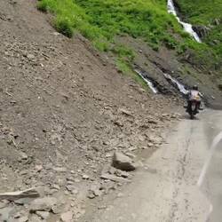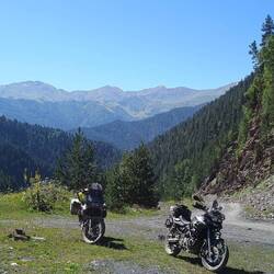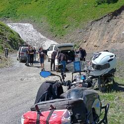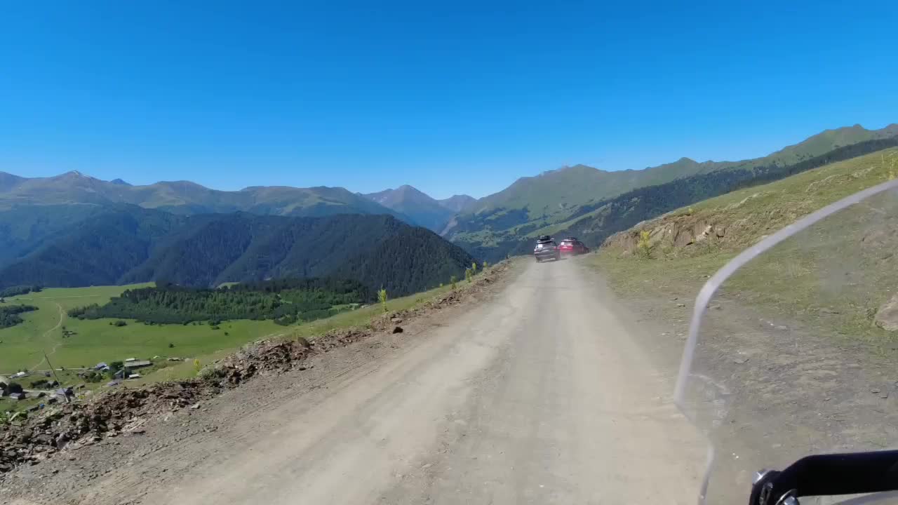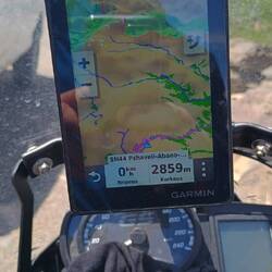 Paluu takaisin Omalosta Kvemo Alvaniin. Paluu matkan ajelin samaa matkaa Italialaisen Marcon kanssa. Kahville meitä kerty muitakin motoristeja, kun hiukan ennen huippua oli tunnin stoppi tietöidenWeiterlesen