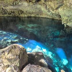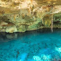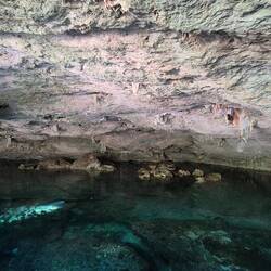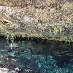 Hier gibt es zwei Cenoten in einer, eigentlich sogar drei, wobei die dritte für Taucher vorbehalten ist. Alle drei sind unterirdisch verbunden und können von Tauchern übers Wasser erkundetRead more