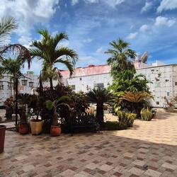 Spät angekommen, gut zum Hotel gekommen, kurz noch was essen und das war's dann. Auf den Fotos der hübsche Innenhof unseres Eco-Hotels.