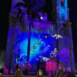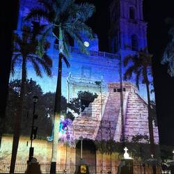 Nach Ankunft in Valladolid kurze Pause und Abendessen gab es an der Kathedrale aus der Kolonialzeit eine Lichtshow zur Geschichte Yucatáns.