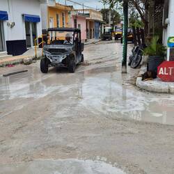 Gestern Abend dann doch noch ein heftiges Unwetter über Holbox. Es deutete sich am späten Nachmittag schon an. Als wir zum Essen waren ging dann der Regen los. Da es auf Holbox keine asphaltiertenLeggi altro