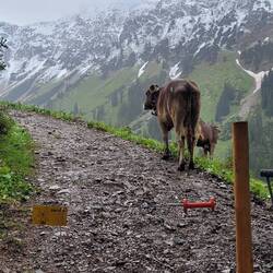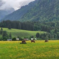 Kurzer Zwischenstop auf 1280m an der Mittelstation der Nebelhornbahn. Und damit noch ein kurzer Rundweg um die Seealpe direkt an den Kühen vorbei. Leider bei Regen. 😞