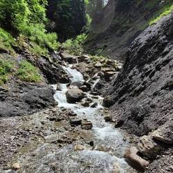 Nachdem wir heute morgen den Bus zur Breitachklamm genommen haben, sind wir auf dem Rückweg entlang der Breitach über Müllers Alpe und die Alpe Dornach zurück nach Oberstdorf gelaufen. Keine SonneMeer informatie