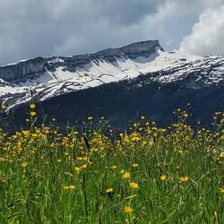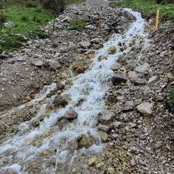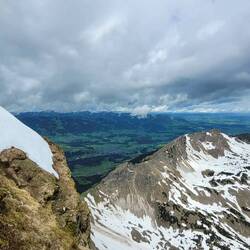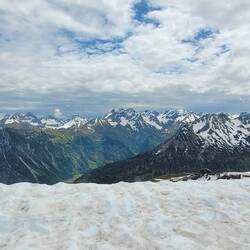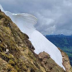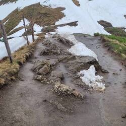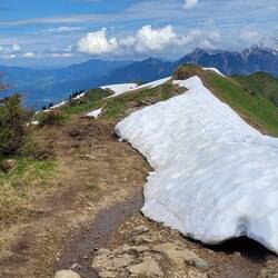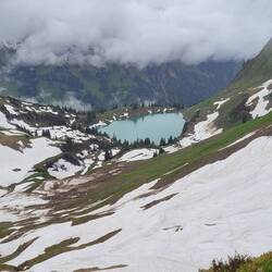 Nun ja, etwas beschwerlicher Abstieg vom Schlappoldeck zur Alpe Schlappold. Foto 1 zeigt unseren Weg. Sehr rutschig und steil, aber geschafft. Über Schnee und Stein. Wir mussten einige Wanderer mitMeer informatie