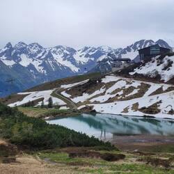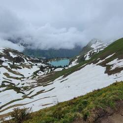 Kleiner Rundgang um den Schlappoldsee von der Mittelstation der Fellhornbahn. Noch sind ungewöhnlich viele Schneereste für diese Jahreszeit vorhanden, wie man hört. Daher sind auch viele WanderwegeMeer informatie