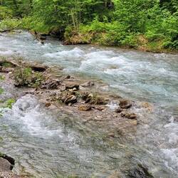 Da man in der Klamm sowieso nass wird, ist das Wetter heute fast egal. Bis auf 2, 3 Tropfen sind wir trocken geblieben. Der Dauerregen seit gestern Abend hat pünktlich zum Brötchenholen heute morgenMeer informatie