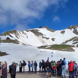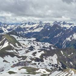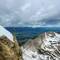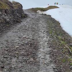 Tja, eine Gratwanderung zwischen den Gipfeln durch Schnee, Geröll und Matsch. Kein großer Spaß bei Höhenangst, aber auf den Weg konzentrieren hilft. 😀