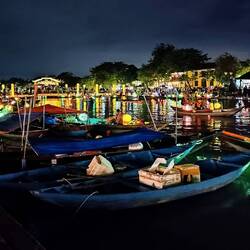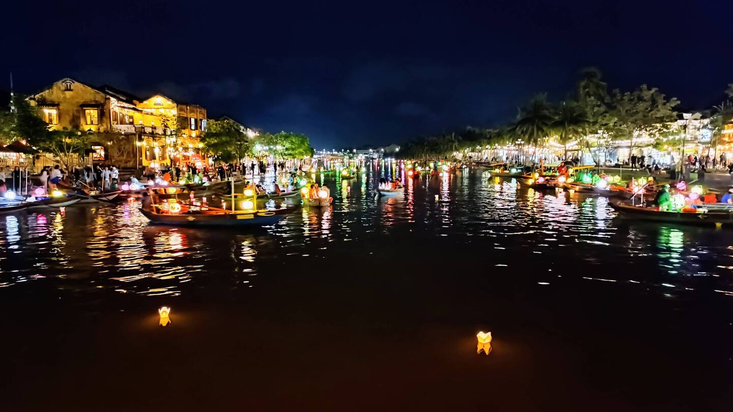 Sein schönstes Gesicht zeigt Hoi An aber in der Nacht, wenn die Strassen und Häuser mit unzähligen Lampions erleuchtet werden. Der Fluss Sông Thu Bồn ist dann gefüllt mit Booten, die Touristen eine kleine Rundfahrt bieten und mit Papierlaternen, die auf dem Wasser schwimmen. Ein wahnsinnig schöner Anblick, dem die Bilder gar nicht gerecht werden können.Leia mais