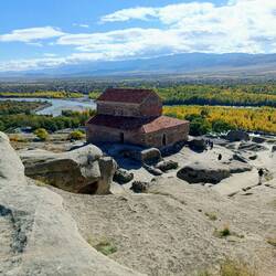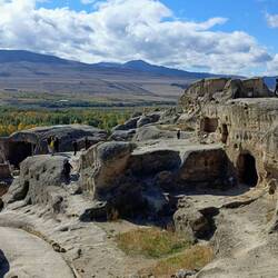 Von Gori aus sind es nur einige Kilometer bis nach Uplisziche, einer weiteren Höhlenstadt. Seit dem 6. Jahrhundert v. Chr. lebten hier Menschen im Fels und als Handelsplatz an der Seidenstrasse bot der Ort rund 5'000 Personen Platz.
