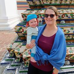 Warum die Fahrt so kostengünstig ist, erfahren wir beim nächsten Halt: Bei "Thai Fashion" kann man sich einen Anzug schneidern lassen. Dass wir nicht mit noch mehr Kleidung herumreisen möchten, versteht der Verkäufer schnell. Er und seine KollegInnen sind dann auch mehr begeistert von Eli, die im Geschäft herumgezeigt wird. Sie geben Helen sogar den Pausenraum, damit sie Eli stillen kann. Später gibt es dann noch einen Halt in einem Reisebüro, die uns gerne alle Transporte und Hotels in Thailand organisieren würden.