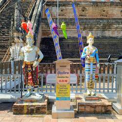 Und beim Wat Chedi Luang stellen wir uns die immense Grösse vor, die der riesige Chedi in seiner ganzen Pracht einmal hatte. Die Elefantenstatuen, von denen einige noch gut erhalten sind, haben wir so noch nie gesehen.