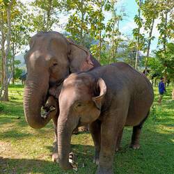 Die fünf Elefanten in dieser Anlage sind zwischen sechs und fünfundvierzig Jahre alt. Sie wurden aus verschiedenen Situationen gerettet: Aus dem Zirkus, aus der Forstindustrie, wo sie illegal eingesetzt werden, oder aus einer der leider noch immer verbreiteten Touristenattraktionen, wo sie zu Reittieren oder zum Fussballspielen gezwungen werden.