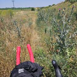 Heute gehts nur so über Feldwege dahin. Zum Teil ziemlich schwierige Streckenabschnitte mit Sand, groben Steinen, Schlaglöchern, Gestrüpp usw...