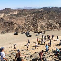 Danach ging es weiter mit den Jeeps ebenso durch die Wüste Richtung Berge, wo wir an einem wunderschönen Aussichtspunkt ankamen. Hier verweilten wir etwas, bis wir einen Sandberg wieder runterrennen durften.