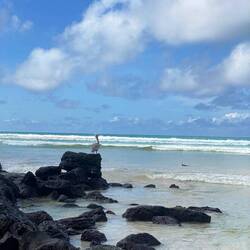 Maja und Stefan gingen dann einmal surfen. Die Wellen waren aber viel zu durcheinander und die Strömung zu stark, sodass sie nicht lange im Wasser blieben.