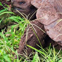 Auf dem heutigen Programmpunkt stand der Lava Tunnel. Hier sind wir erst ein Stück mit dem Bus bis Santa Rosa gefahren und von dort aus ging es noch 3,5km zu Fuß weiter. Als wir auf die Schotterstraße einbogen, sah man gleich schon die erste große Schildkröte im Gras sitzen. Auch ein freilaufender Esel begegnete uns auf dem Weg.