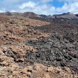Als wir dann weiter liefen wurde die Landschaft immer spektakulärer. Überall Lavagestein in den verschiedensten Farben und zwischendurch wuchsen Kakteen. An einer Stelle konnte man genau den Übergang sehen, von dem Gestein eines sehr weit zurückliegenden Ausbruches und dem des Ausbruches von 1979. Auf der einen Seite fand schon die Vegetation statt und das Gestein war rötlich. Auf der anderen Seite war das Gestein noch komplett tot und schwarz. Es dauert teilweise Jahrhunderte, bis es zur ersten Vegetation kommt. Der letzte Ausbruch war im Jahr 2018. Immer wieder waren im Boden große Risse. Der Gedanke, dass auch mir unter den Füßen alles zusammenkrachen könnte, war etwas beängstigend. Unser Guide war sehr sympathisch und erzählte uns einiges, wie es noch vor 20-30 Jahren auf der Insel war.