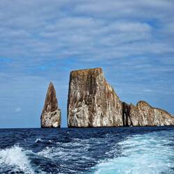 Angekommen am „Kicker-Rock“ ging es in die erste Runde. Gleich nachdem wir ins Wasser sprangen, konnte man einen Galapagoshai sehen. Da sich erst alle noch zurecht finden mussten und wir dann in die entgegengesetzte Richtung schwammen, konnte man ihn nicht weiter verfolgen. Dafür waren viele Schildkröten und jede Menge anderer Fische zu sehen. Nach ca. 40-45 min war der Schnorchelgang zu Ende. Weitere Haie und vor Allem auch Hammerhaie waren in dem Moment leider nicht zu sehen.