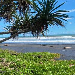 Die ganze Nacht gewitterte es so heftig, dass ich teilweise das Gefühl hatte, mir reißt das Bett unter mir weg. Daher waren auch die Wellen heute morgen ziemlich hoch und kräftig, weshalb wir wieder erst um 11:30 starteten. Auch jetzt noch hatten die Wellen so eine Wucht, dass man es kaum schaffte, entgegen zu laufen. Fürs Surfen war das jedoch ganz gut, da man so mehr Schwung reinbekam. Heute klappte es schon richtig gut und ich wurde immer sicherer auf dem Board und schaffte es oft, bis zum Ende zu stehen.