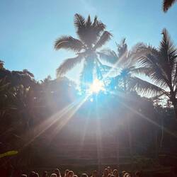 Beim Atemtraining bemerkte ich leider, dass meine Lunge nach wie vor sich nicht so ausdehnen kann, wie normalerweise üblich. (verdammtes Long-Covid!) Auch sonst konnte ich mich mit den meisten der Übungen leider nicht so sehr anfreunden. Bei den üblichen Yoga-Figuren machte man innerhalb der kurzen Zeit totale Fortschritte. Vor allem ich, die absolut kein Gleichgewicht besaß, nicht mal im Stehen eine Socke anziehen konnte, keinen Purzelbaum kann und noch nie zuvor Yoga gemacht hat. Ich war erstaunt, wie schnell sich die Innenmuskulatur aufbaut und wie man dehnbarer wird. In der dritten Woche allerdings, gingen nach und nach die Kräfte verloren und mir taten die Handegelenke und Oberschenkel weh. Zudem war es wahnsinnig kräftezehrend täglich um 5:30 Uhr aufzustehen und dann direkt die Praxisübungen am Morgen vor dem Frühstück zu haben. Auch bei den Meditationen fiel es mir teilweise schwer, mich darauf einzulassen. Obwohl unser Lehrer hier auch einer der authentischsten und inspirierendsten war. Wenn wir „Activ Meditation“ hatten, mit Tanzen usw., machte es mir sehr Spaß. Wenn es jedoch zu sehr in die spirituelle Richtung ging, war ich raus. Dennoch hatten wir in der Gruppe immer sehr schöne Momente währenddessen zusammen.