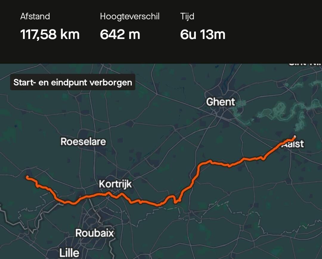 Zwaarste rit tot nu toe omwille van temperatuur en de vele korte beklimmingen. Fietsen door heuvel land en de vlaamse ardennen met de oude kwaremont en de paterberg op het menu.