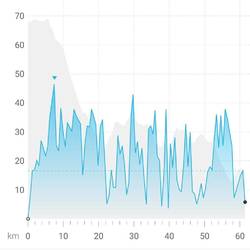 De rit begint met een afdaling vanuit Ella, Eens uit het gebergte glooiend landschap met hellingen rond 2%. Kenmerkend voor deze rit zijn ook de groteLeer más