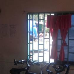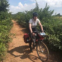 Katjana's fiets: platte band herstel. Veroorzaakt door stukje staaldraad.
