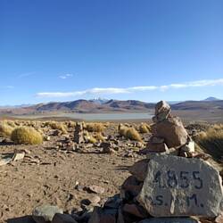 On roule toute l'après-midi en s'arrêtant à certains points de vue. Nous nous arrêtons notamment dans un ancien village espagnol en ruine proche d'une mine où nous pouvons voir des extraits de minéraux. Dernier arrêt de la journée, mirador sur un lac au pied du volcan Uturunco .