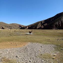 Le long de la route nous croisons énormément de Vigognes (sorte de lama sauvage) et de Lamas (domestiques). Les lamas ont tous des pompoms colorés sur les oreilles qui permettent d'identifier à qui ils appartiennent. C'est assez drôle de voir des animaux colorés au milieu de nulle part ! 🦙