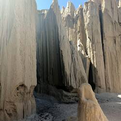 Au début nous voyons beaucoup de Quebradas, Palala et Sillar et nous croisons beaucoup de mines (d'or et d'argent). L'activité minière ici a fortement augmenté avec la guerre en Ukraine. Ensuite nous nous arrêtons pour manger au pieds de la "ville enchantée", très beau canyon posé au milieu de nulle part ! Au menu, tomates et concombre en entrée puis milanesa de poulet (super bonne) avec riz et pomme de terre. 🥔🍚