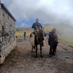 Après un petit déjeuner, pas si mal du tout, c'est seulement vers midi que nous décollons. 6h avec 800m de D+, il ne va pas falloir traîner. Début de la rando sportive, en seulement 800m nous grimpons (au sens propre) 300m de dénivelé ! 🧗 La vue qui nous attend nous fait oublier que nous avons souffert. Une petite pause pour une salade de lentilles et c'est reparti !