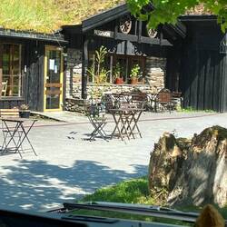 Hier steht das älteste Hotel Norwegens, schon in der 9. Generation familiengeführt, stammt aus dem Jahr 1640. Die Hotelanlage ist eingebettet mitten in einem romantischen Garten. Auch die Innenausstattung soll historisches Ambiente vermitteln. Kann ich nicht beurteilen, drinnen waren wir nicht.