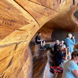 Pausieren wir bei der Holzkirche in Nord-Sel.