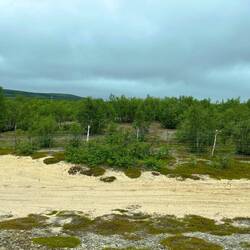 Kurz vor Enontekiö wird die Landschaft eher sandig mit dichten Kiefernwälder.