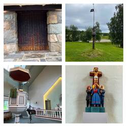 Die Karesuando Holzkirche ist von 1905. 1953 wurde zur Verstärkung des Gotteshauses ein Steinfundament angebaut.